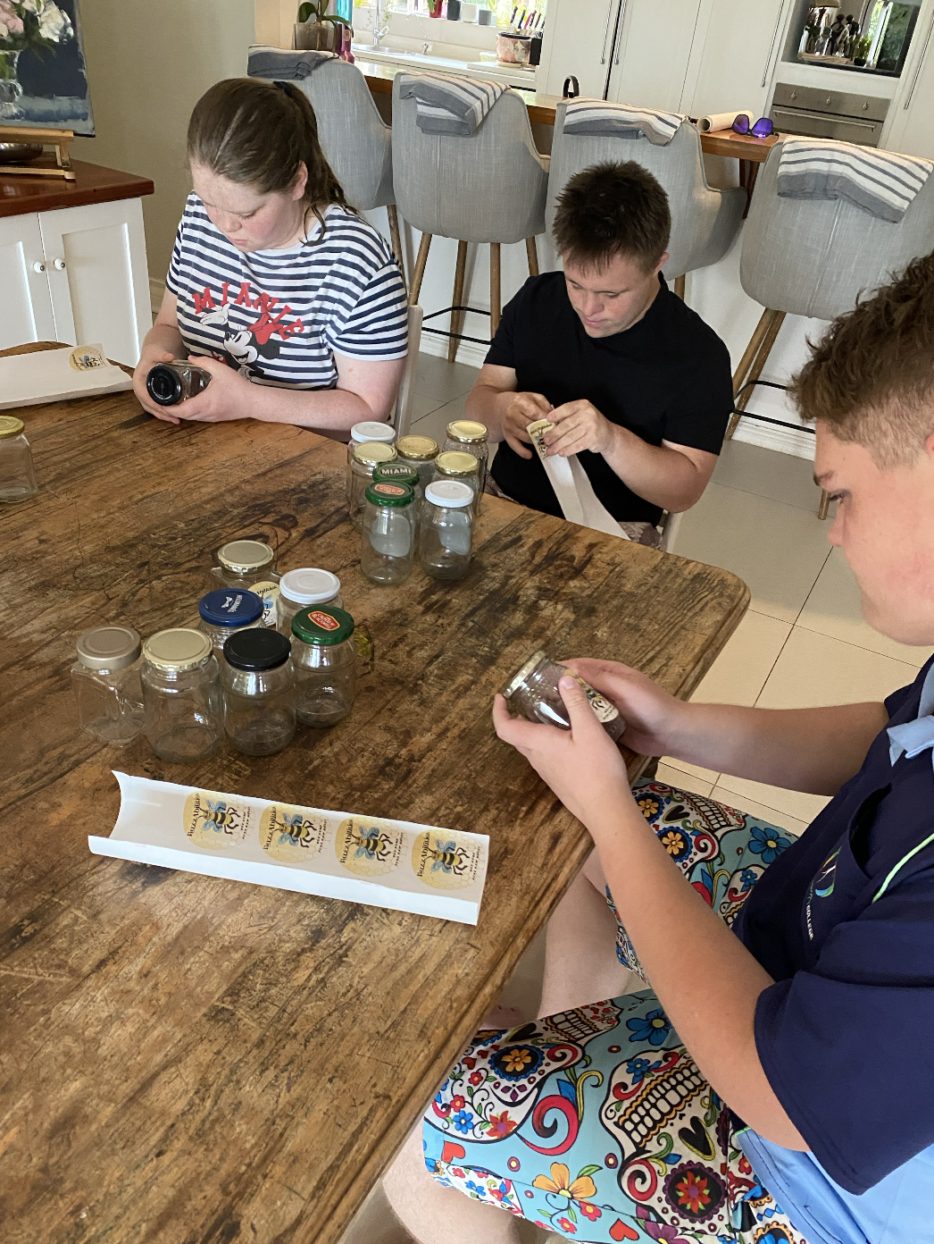 They work hard to meticulously clean, sterilise, relabel and fill the jars with BuzzAbility Honey before they are ready to bring joy to others!